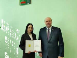Состоялась торжественная церемония вручения Радченко Ольге, победителю VI Республиканского конкурса профессионального мастерства, Свидетельства о присуждении специальной премии Президента Республики Беларусь.