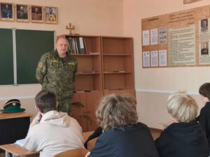 27.03.2026 с целью доведения до учащихся информации об Органах пограничной службы Республики Беларусь и задачах выполняемых сотрудниками Органов пограничной службы Республики Беларусь по охране Государственной границы Республики Беларусь, а также подбора кандидатов из числа учащихся изъявивших желание проходить обучение в учреждениях высшего образования Республики Беларусь и Российской Федерации в интересах Органов пограничной службы Республики Беларусь, с учащимися нашего колледжа провел беседу майор НЦС Трухонович А. В.